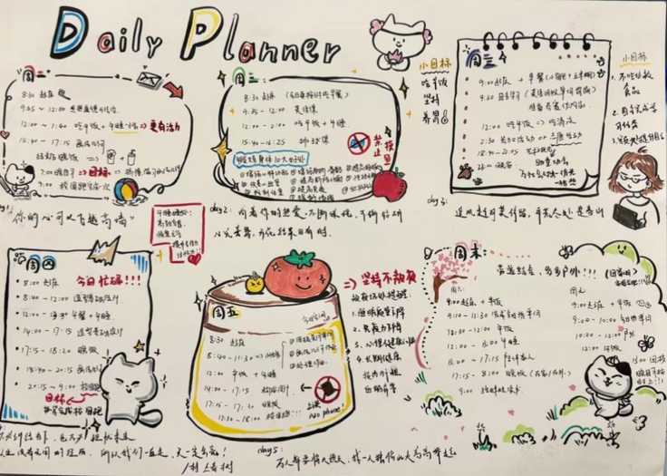 最美计划表设计活动引导学生锻规划之能、提审美之质,育作息之规、立学风之基,以创意设计为纽带,让科学规划的意识深植心间,让积极自律的风尚蔚然成风。(作者:孙长玥 张梦蝶 谷惠茹;一审:施林坡;二审:任磊;三审:潘青)