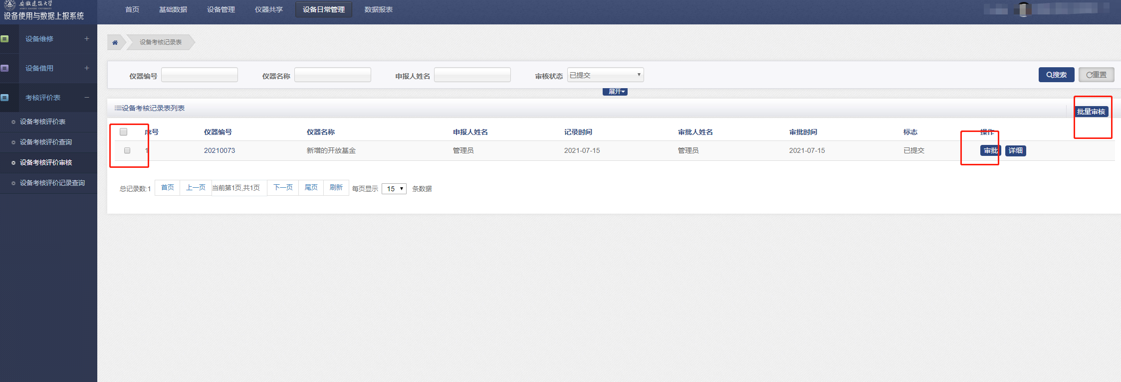 所有提交的设备考核评价表在此审核。