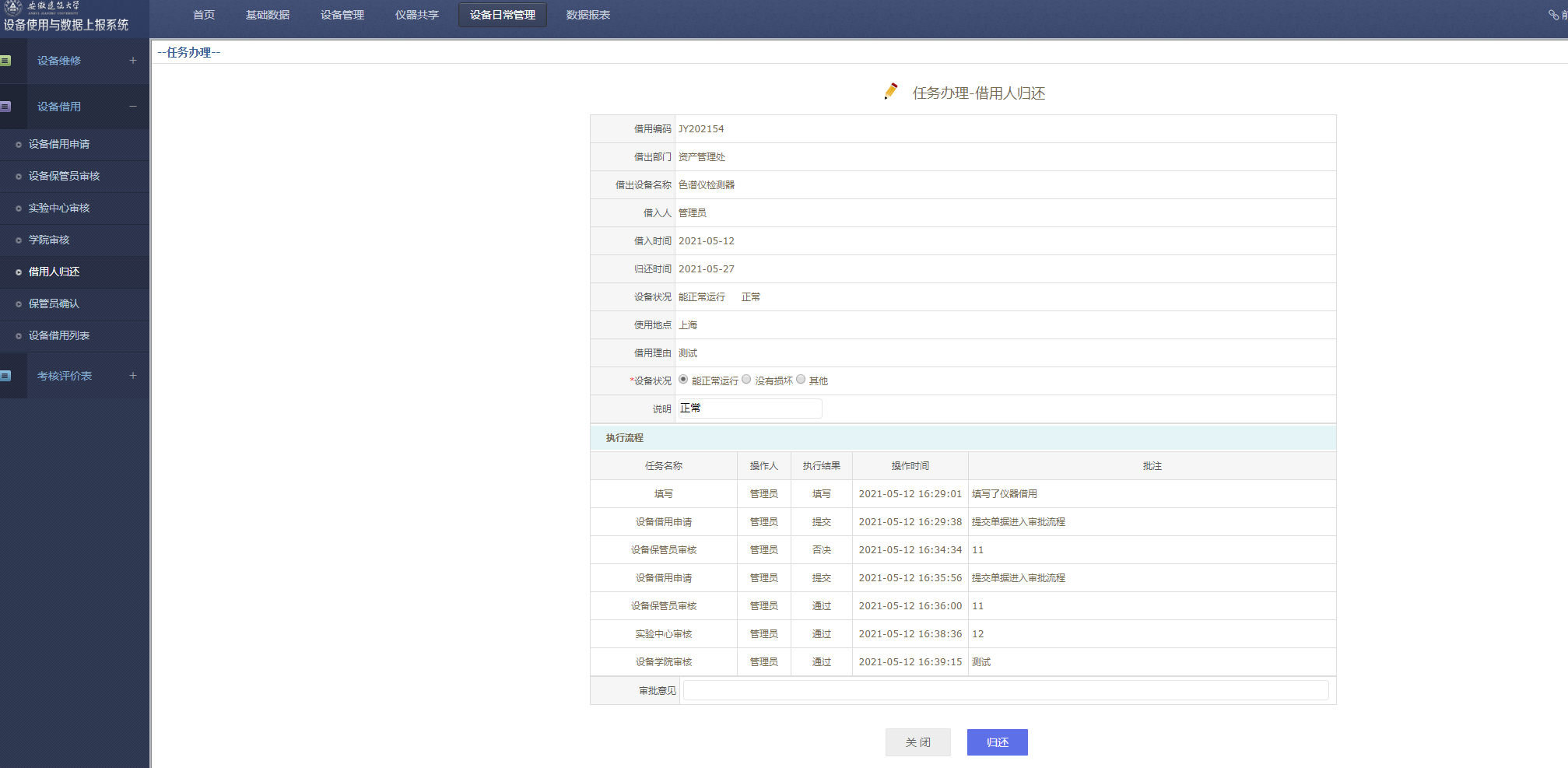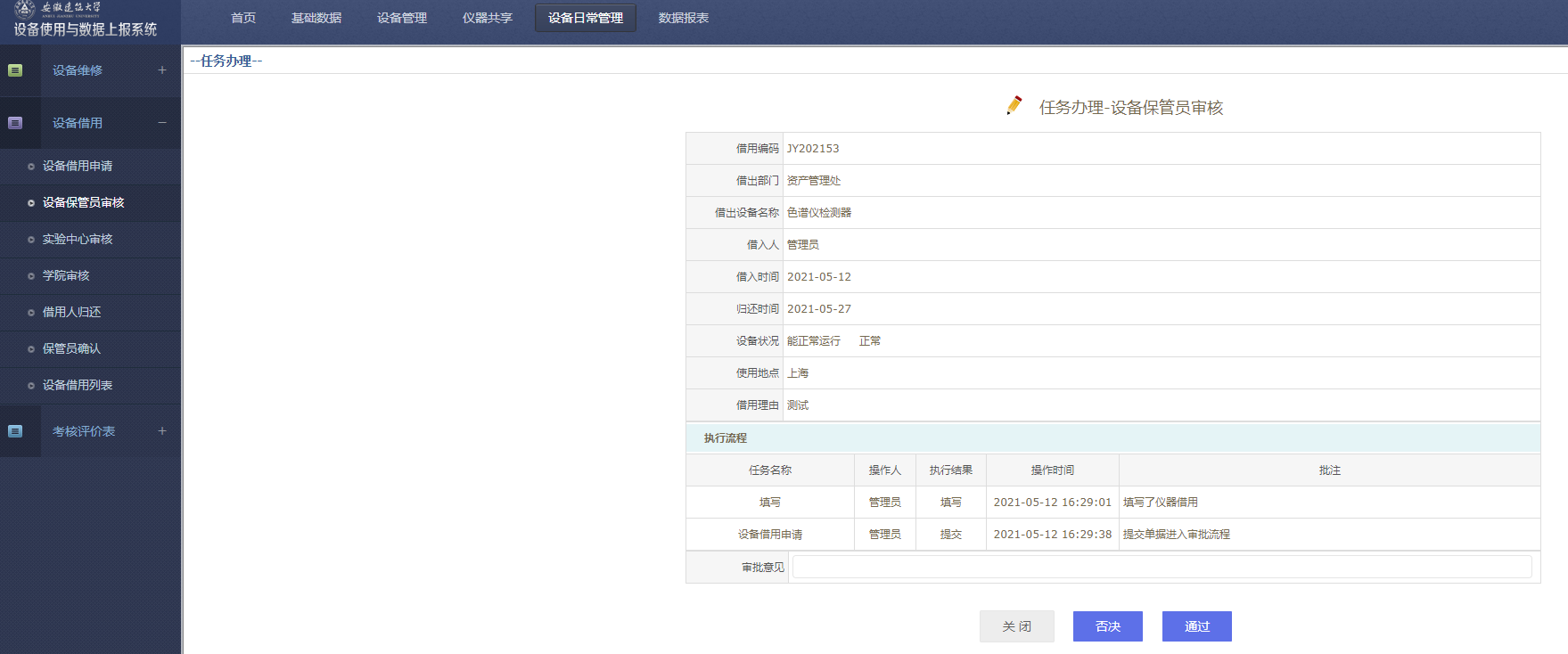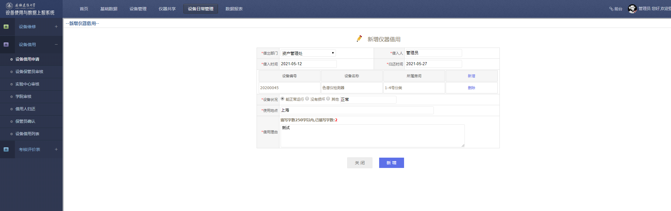 (提交借用的设备必须有保管员,若无,则无法进行设备保管员审核)