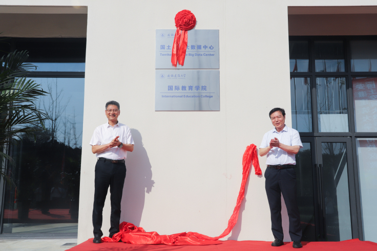 李早主持启动仪式,她代表学校对国土空间大数据中心的各参建单位表示了感谢,并从功能定位、建筑风格、重要意义三个方面对国土空间大数据中心项目进行简要介绍,同时指出国土空间大数据中心的建成,不仅是学校高质量发展的重要里程碑,更预示着学校未来发展将翻开一页崭新的辉煌篇章。随后,校党委书记马文革和校长黄显怀为国土空间大数据中心揭牌,马文革宣布国土空间大数据中心正式启用,现场响起热烈的掌声,各出席单位共同见证了这一历史性时刻并合影留念。