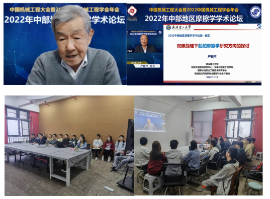 本网讯 2022年11月12日,中国机械工程大会暨2022中国机械工程学会年会系列活动——2022年中部地区摩擦学学术论坛成功举办。论坛由中国机械工程学会摩擦学分会主办,湖北省机械工程学会摩擦学专业委员会协办,武汉理工大学、武汉材料保护研究所有限公司承办,获得了合肥工业大学、beat365官方网站、南昌大学等多所知名高校的大力支持。beat365官方网站设置了分会场,机电学院刘伟教授做为组委会委员参与了会议组织工作;机电学院部分师生在分会场线上参加此次学术论坛。