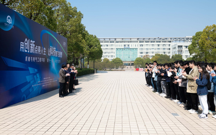 在热烈的掌声中,张亚新宣布机械与电气工程学院第十一届科技文化节开幕。他充分肯定了学院师生亲自动手、亲身实践取得的优异成绩,勉励青年学生在积极参与、踊跃学习中增强学术使命感、专业认同感和社会责任感,一是科研的路山高水远,只有脚踏实地才能走得长远;二是脚下的路任重致远,要勇担青年使命才能攻坚克难、打破掣肘;三是探索的路由近及远,要找到科研兴趣,挖掘前进动力,矢志不渝,精进不休。