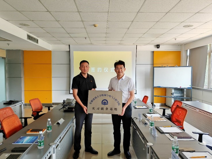 会上,机电学院院长张润梅针对学院的学科建设、师资力量、专业特色及育人优势进行了介绍。校企双方签订了就业基地协议书,并为实习就业基地揭牌。