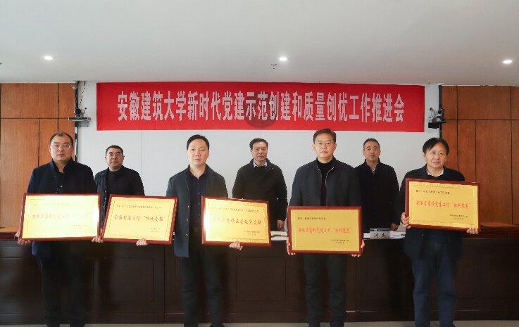 全国党建工作“样板支部”、安徽省高校五星级党支部——电子与信息工程学院党委书记孙长城;安徽省高校党建工作“标杆院系”——环境与能源工程学院党委书记戴前宏;安徽省高校党建工作“样板支部”、安徽省四星级党支部——数理学院学生第一党支部书记水天柱;校级“双带头人”工作室代表——公共管理学院人力资源与社会保障系教师党支部书记连瑞瑞分别作交流发言。