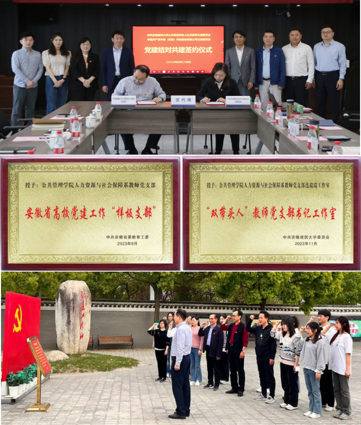 习近平总书记指出:“要坚持教育者先受教育”。人社系教师党支部始终把党的政治建设放在首位,认真组织开展主题教育,严格落实“三会一课”制度,突出理论学习和政治教育,采用课程思政研磨会、课程思政示范课、红色管理故事会、红色观影活动、红色之旅等多种形式,丰富“三会一课”内容、提升“三会一课”质效。2023年11月,党支部书记连瑞瑞被省委教育工委选拔参加全国高校“双带头人”教师党支部书记高级研修班等培训,并在学习归来后以“抓党建 真融合 高质量 促发展”为题,从研修活动学习内容、样板支部交流所获和学习体会汇报三个方面作学习分享。通过政治理论学习,人社系教师党支部注入了源源不断的育人动力,将学习成果持续转化为立德树人的实际行动,获立省级党建专项课题1项,获评校级师德标兵2人。在全院师生共同努力下,公管学院先后获评安徽省高校优秀基层党组织、“全国工人先锋号”。