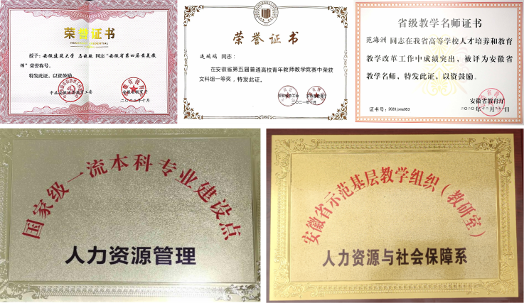 《左传》有言:“政如农功,日夜思之,思其始而成其终”。人社系教师党支部常态化组织党员教师研讨创新工作方式,定期采用课程思政研磨会、课程思政示范课、红色观影活动、红色之旅等活动形式,结合专家报告、拓展训练、行动学习等教育形式,扎实有效开展教师思想政治工作和新时代知识分子工作,促进党建活动质效提增,持续强化党员教师教书育人本领,不断推动基层教学组织建设提升。在党建引领带动下,支部教师党员中1人获得安徽省青教赛一等奖,1人获评省级“最美教师”,4人获评省级“教学名师”,4人获评省级“教坛新秀”。支部所属教研室获批安徽省虚拟教研室、安徽省教学创新团队,人力资源管理专业获批国家级一流本科专业建设点,支部成员获省级教学成果奖特等奖2项、二等奖3项,2门课程被推荐出省申报国家一流课程,2个教学案例入选人民网课程思政专栏。