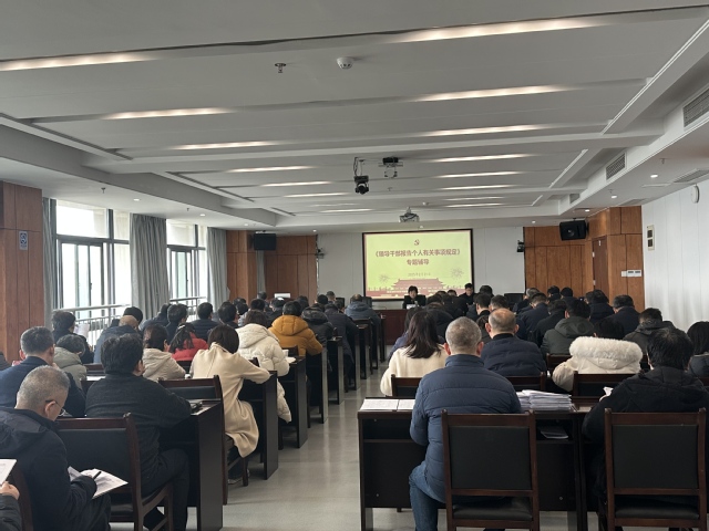 本网讯 为高质量做好学校2025年领导干部报告个人有关事项集中填报工作,落实落细省委巡视整改工作举措,2月21日,学校在紫云路校区徽风楼21楼第一会议室召开2025年领导干部报告个人有关事项工作专题部署暨辅导会。校党委常委、副校长李早和相关中层领导人员参加会议,校党委常委、组织部部长吴运传主持会议。
